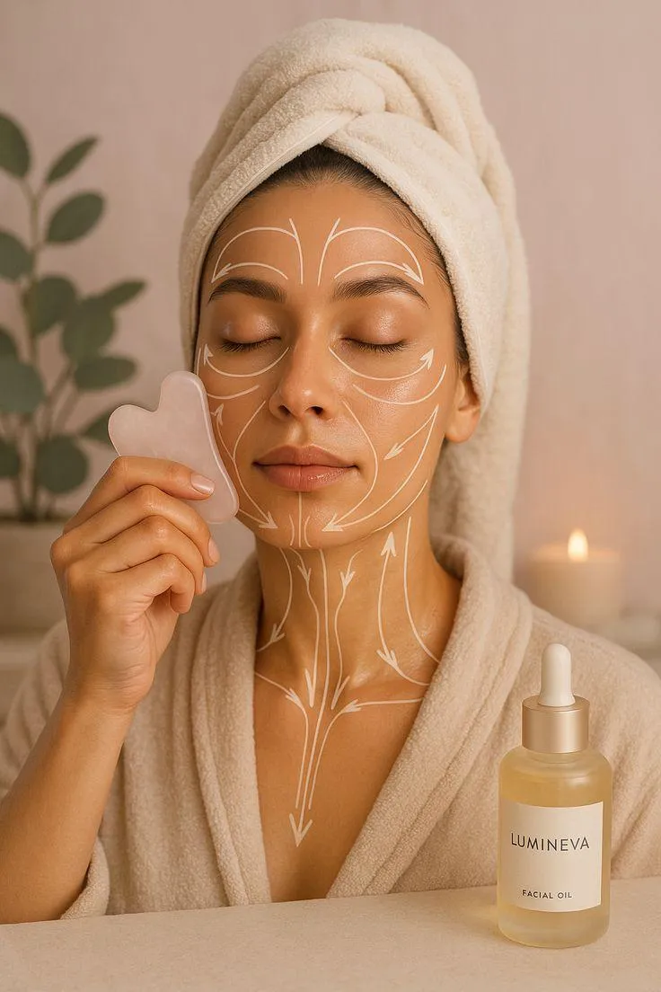 Estimula drenaje linfático, tonifica y ayuda a definir contornos faciales.